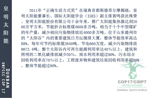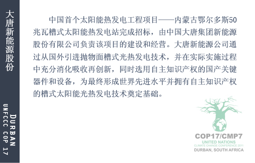 《聯合國氣候變化框架公約》第17次締約方會議(COP17/MOP7)將在南非德班召開 |