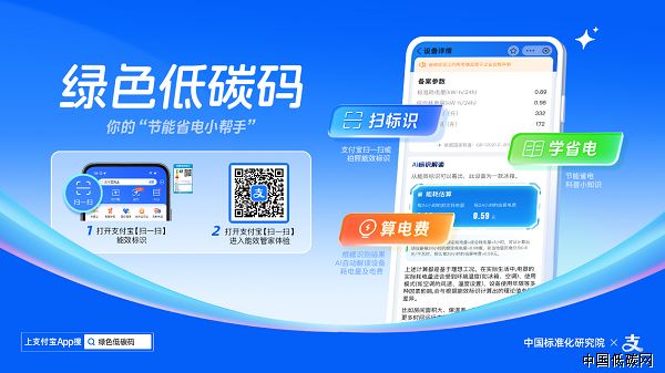 為進一步推動能效標識從“政策層面”走向“生活場景”,實現節能知識普及,引導綠色消費,中國標準化研究院聯合支付寶平臺全新推出“綠色低碳碼”小程序。該程序集成了標識真偽核驗、電器能耗估算、個性化節能建議三大核心功能,旨在幫助消費者不僅“看得懂”能效標識,更能“用得上”節能信息,推動消費者形成“掃碼驗真、按需選購”的綠色消費習慣。